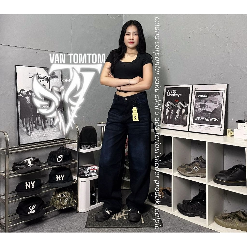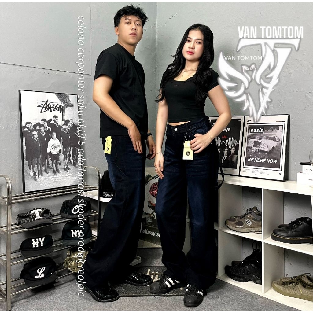 Celana Carpenter Jeans Whisker Unisex Gombrong Baggy Streetwear