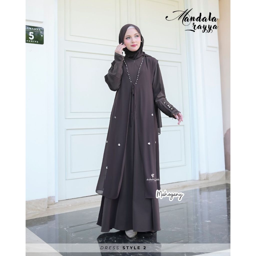 Sarimbit Couple Mandala Rayya Famset Lebaran 2026 Kekinian Gamis Abaya Mahogany Anti Uv