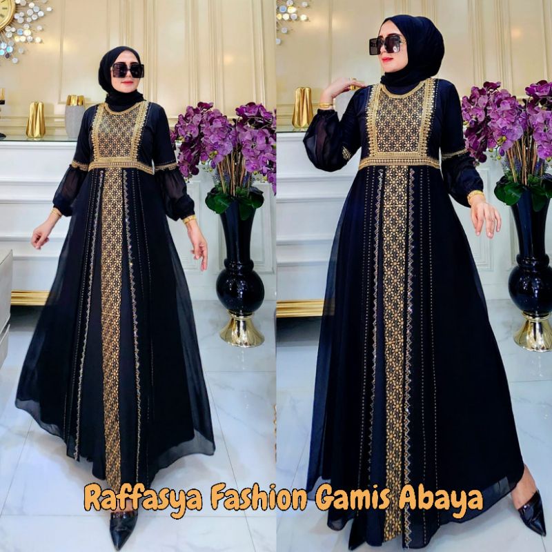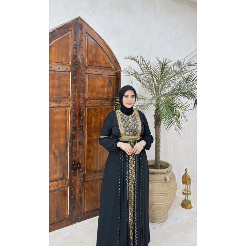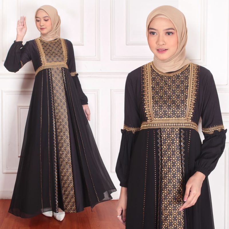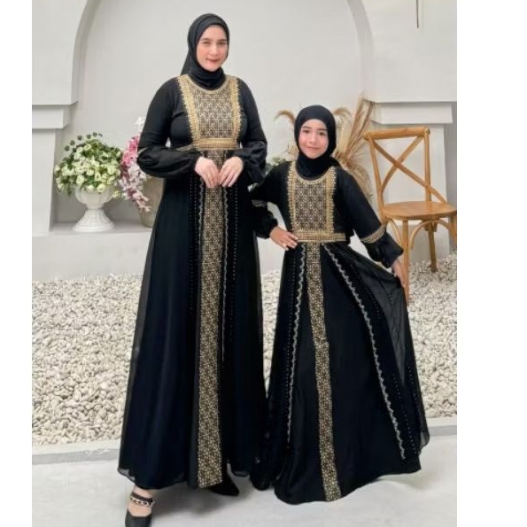 GAMIS ABAYA TURKEY BORDIR SAFIRA COKLAT COUPLE IBU DAN ANAK