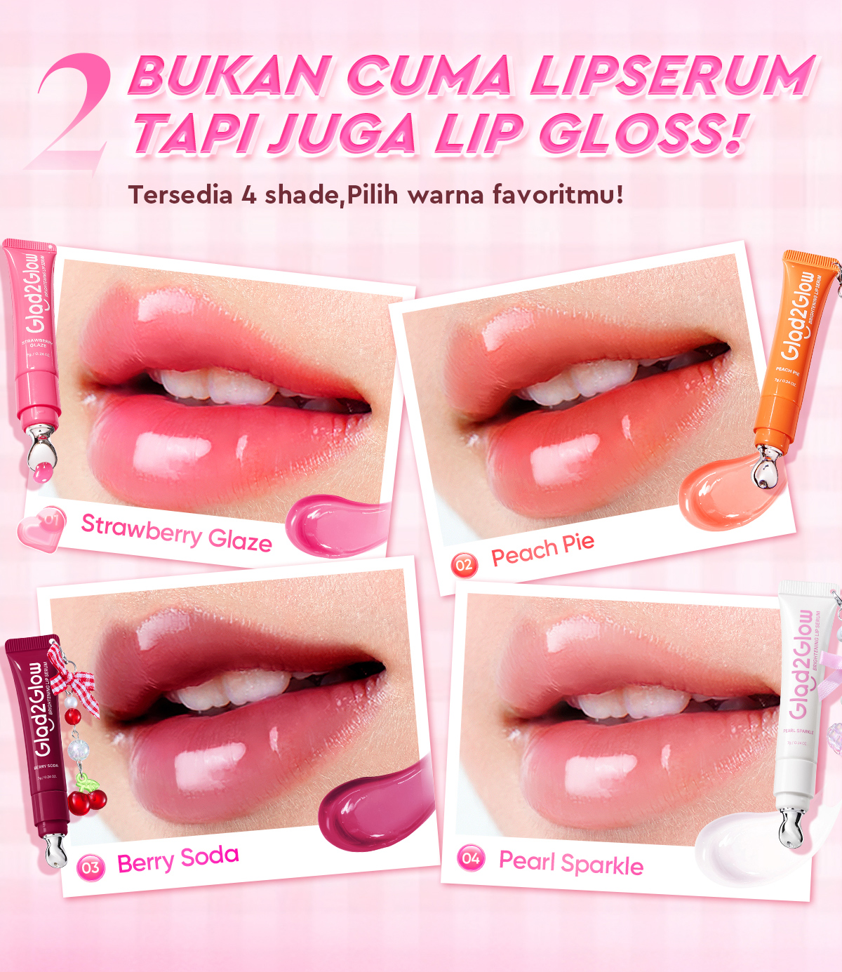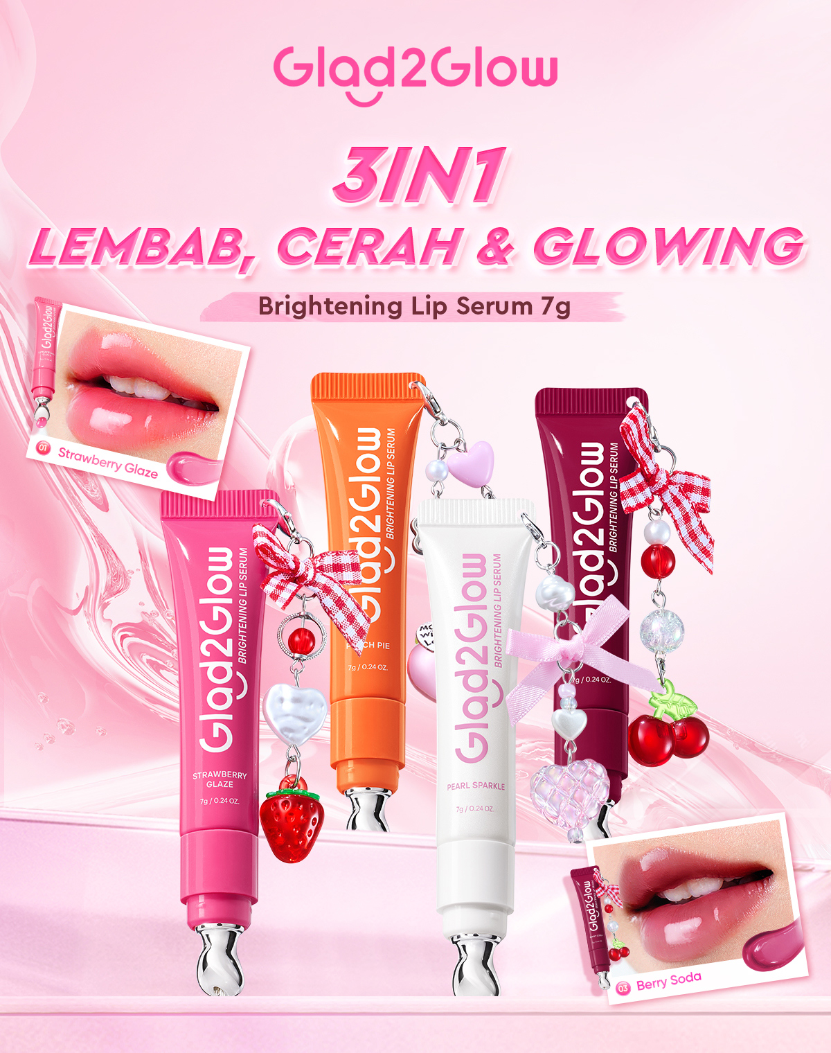 [Mall] [2PCS LEBIH CUAN]GLAD 2 GLOW OFFICIAL BRIGHTENING LIP SERUM 7G BERRY SODA SHADE READY STOCK! G2GLOW 1 PAKET G2G