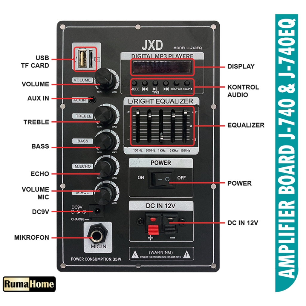 Amplifier Board 12V Bluetooth 5.0 Equalizer Power Support MP3 USB AV TF FM Remote Car Music BASS