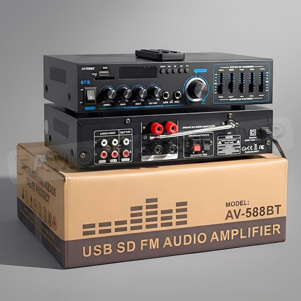 Amplifier Daya 1000 Watt Full Bass Fleco AV-588BT Audio Penguat Suara Full Bass Treble | Ampli ORIGINAL FLECO 1000 WATT Power Amplifier Bluetooth Karaoke + Mp3 player + Radio FM | TOKO FAMOUS STAR