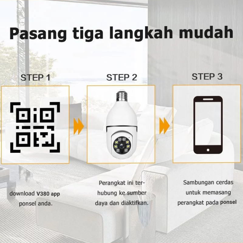 CCTV Camera V380 Pro IP Camera CCTV Indoor Wifi Lamp 360° Wide 1080P HD Convenient Installation PTZ & Memory Card