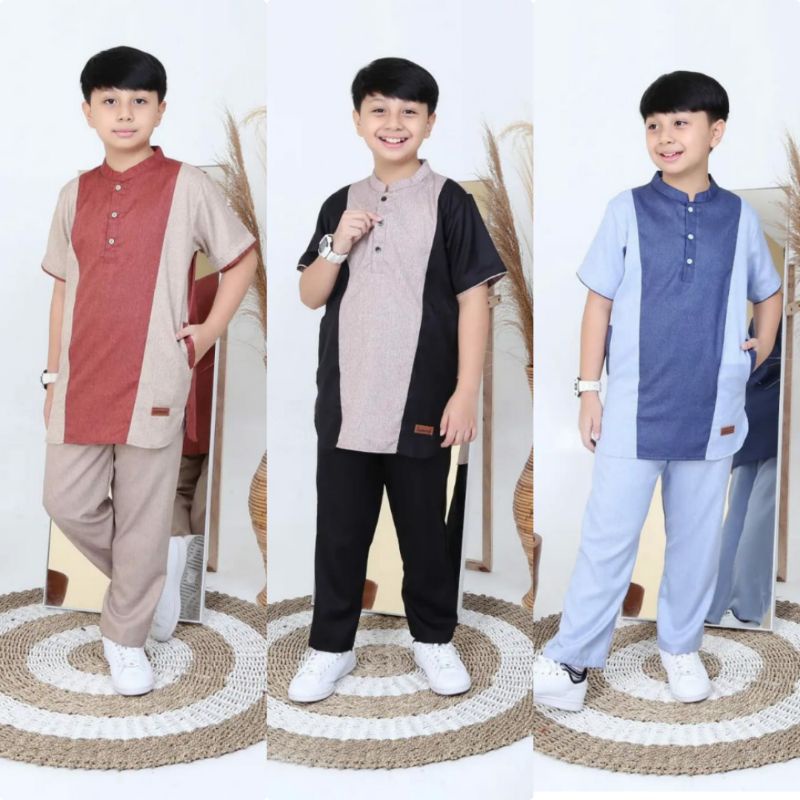 baju setelan Koko anak laki laki al'amam lengan pendek usia 8-16 tahun new