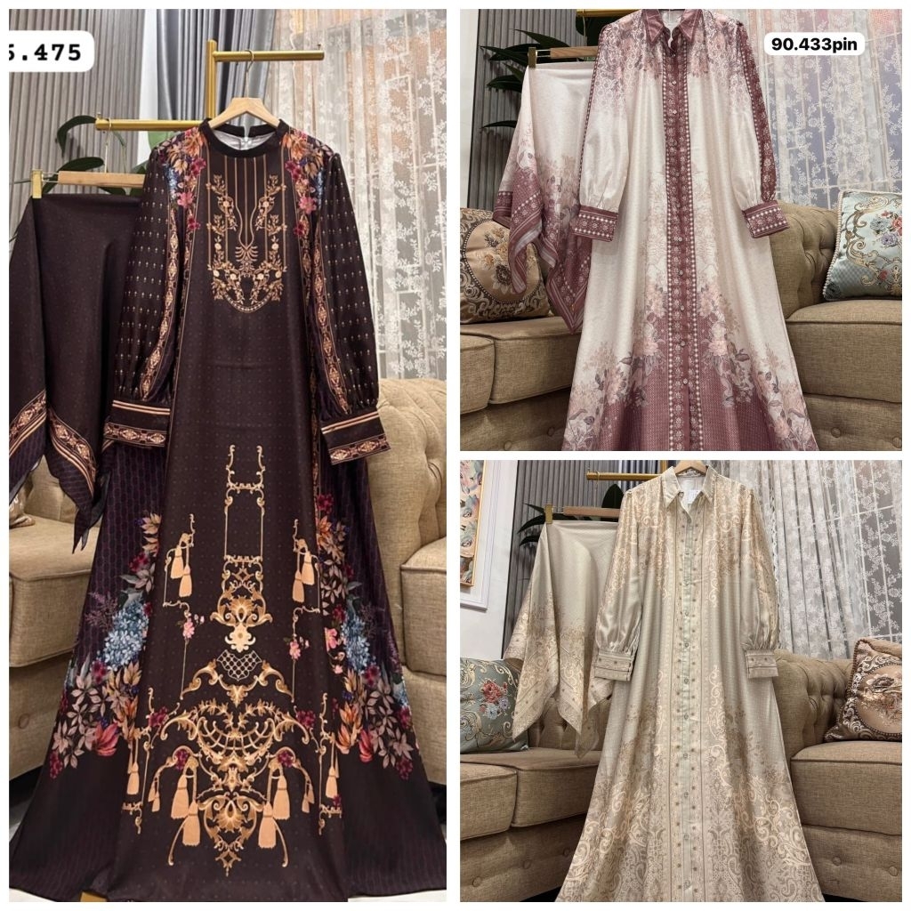 SET HIJAB KATUN MOTIF PRENIUM (GAMIS + HIJAB)