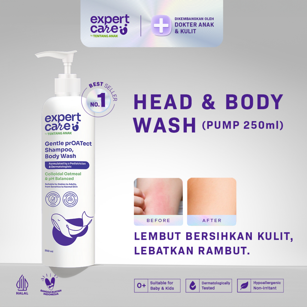 FORMULA & KAN BARU Sabun & Sam Bayi Anak - Expert Care 2in1 Shamo and Body Wash 250ml dengan Colloidal Oatmeal & Nutrimoist - Kulit Lebih Lembap, Rambut Lebih Lembut