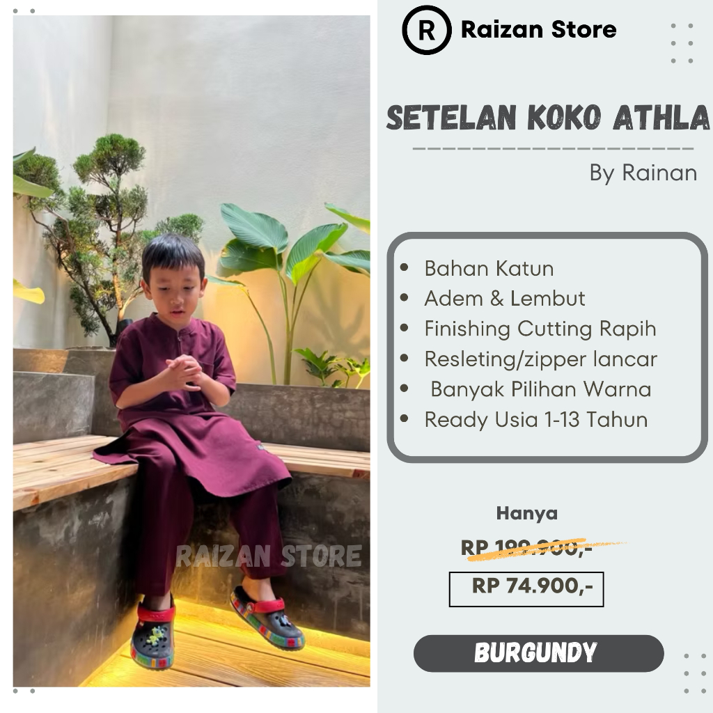 Baju Koko Anak Laki -Laki Setelan Athla By Rainan Ori Bahan Adem Lembut Usia 1-13 Tahun