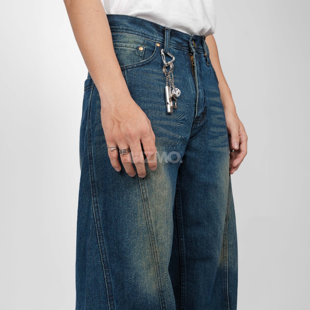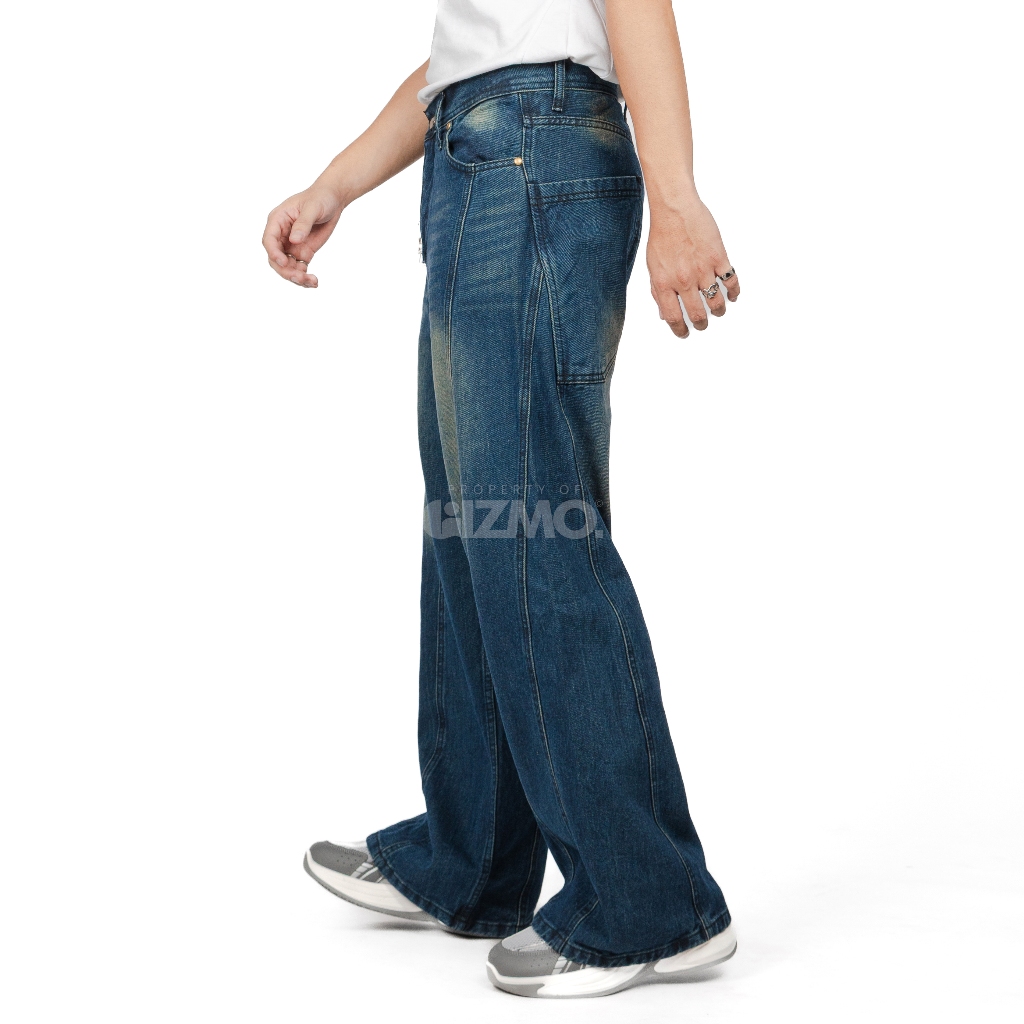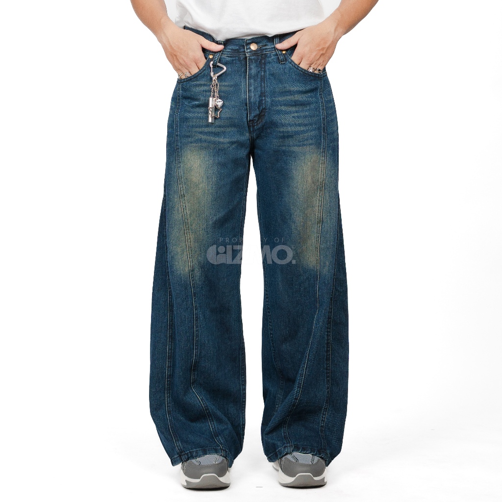 Gizmo - Baggy Jeans Pecah Pola - Split Flow Fade Blue- Streetwear Baggy Style- Lebar Gombrong Skena - Celana Denim Cargo Gombrong Skena
