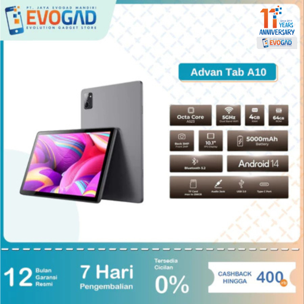 ADVAN TAB A10 Wifi 4GB/64GB 10.1”IPS Screen Tablet Android 14 | Garansi Resmi Advan Indonesia 1 Tahun