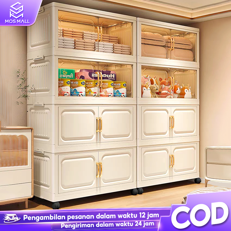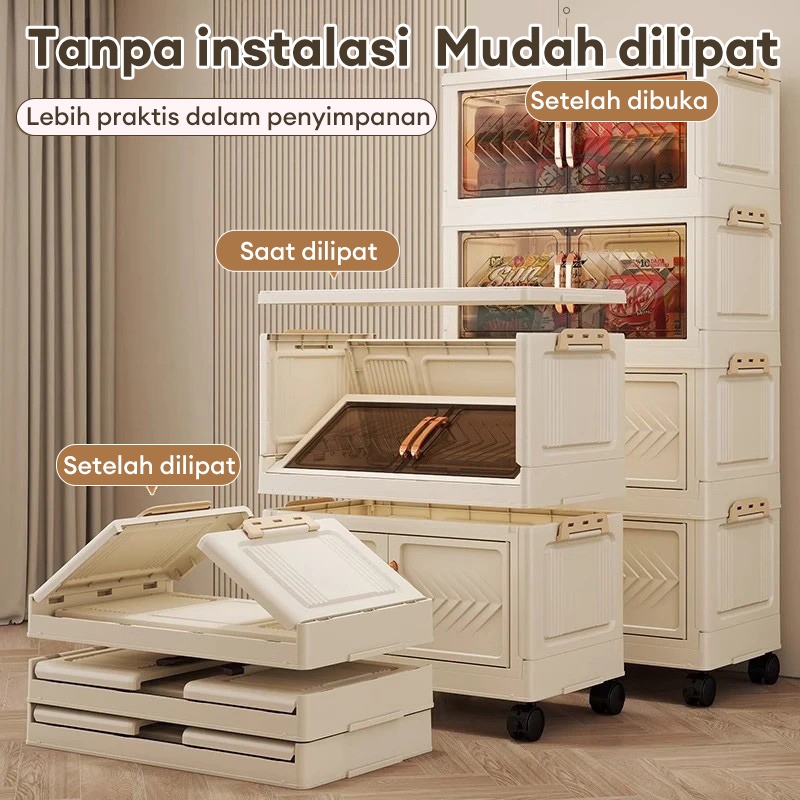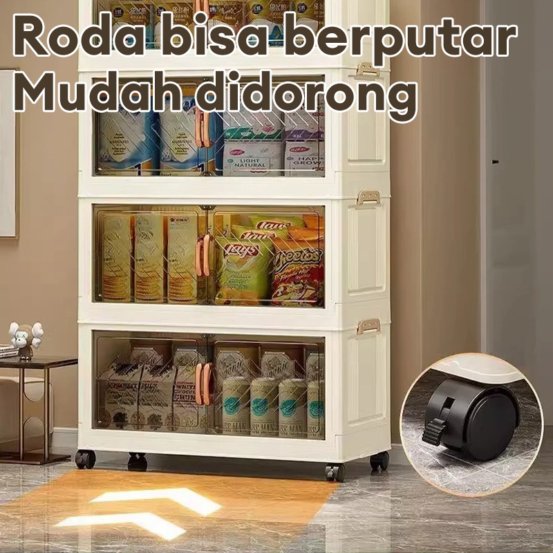 Lemari Buku Serbaguna Ada Roda/Lemari Makanan Minimalis Modern/Kabinet Plastik Lipat Kombinasi
