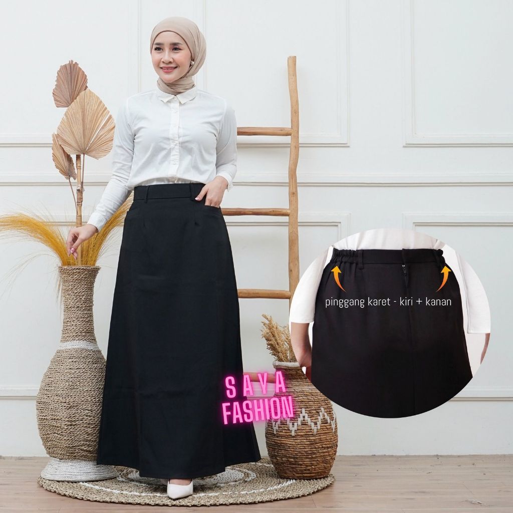 SAYA - rok kerja kantor sekolah panjang hitam model A Line Maxi Skirt