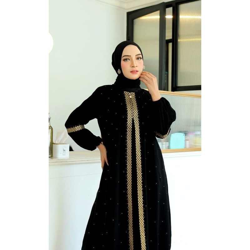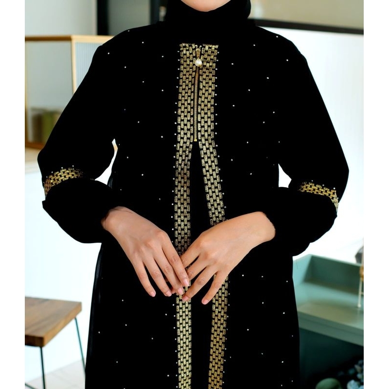 Abaya Gamis Syari Arab Saudi Hitam Bordir Turkey Muslimah Turki Cantik Abaya Ziper Renda Gold