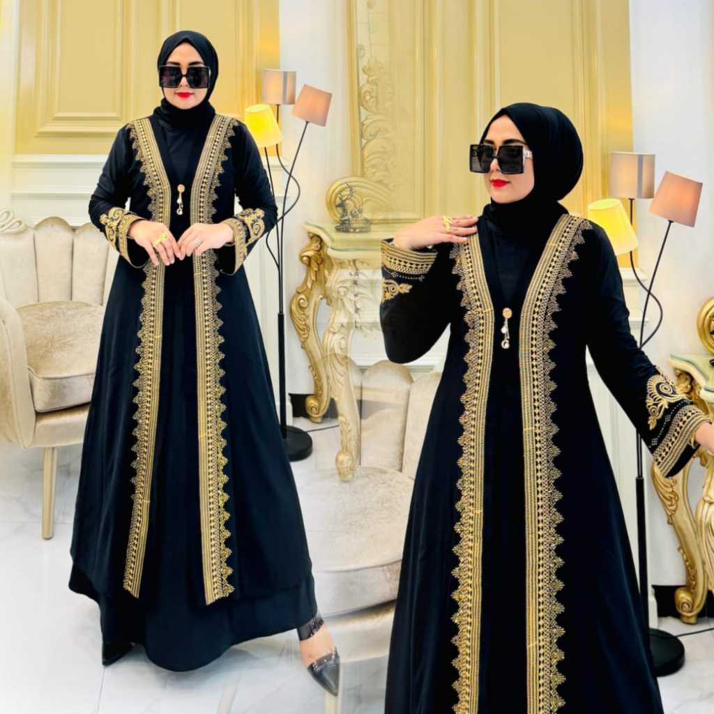 Gamis Abaya Hitam Turkey Bahan Jersey Mix Ceruty Bordir / Baju Busana Maxi Dress Muslim Wanita - List Gold