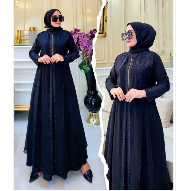 Gamis Abaya Turkey Hitam SHANIA / Abaya Turkey Muslim Wanita BUSUI Jersey mix Ceruty Mode Terbaru Size M L XL XXL