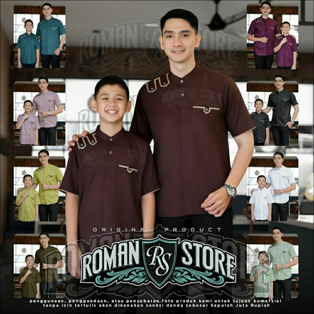 Baju Koko Couple Ayah Anak Laki Laki Bahan Toyobo Import Terbaru 2026 WARNA EMERALD / MAHOGANY