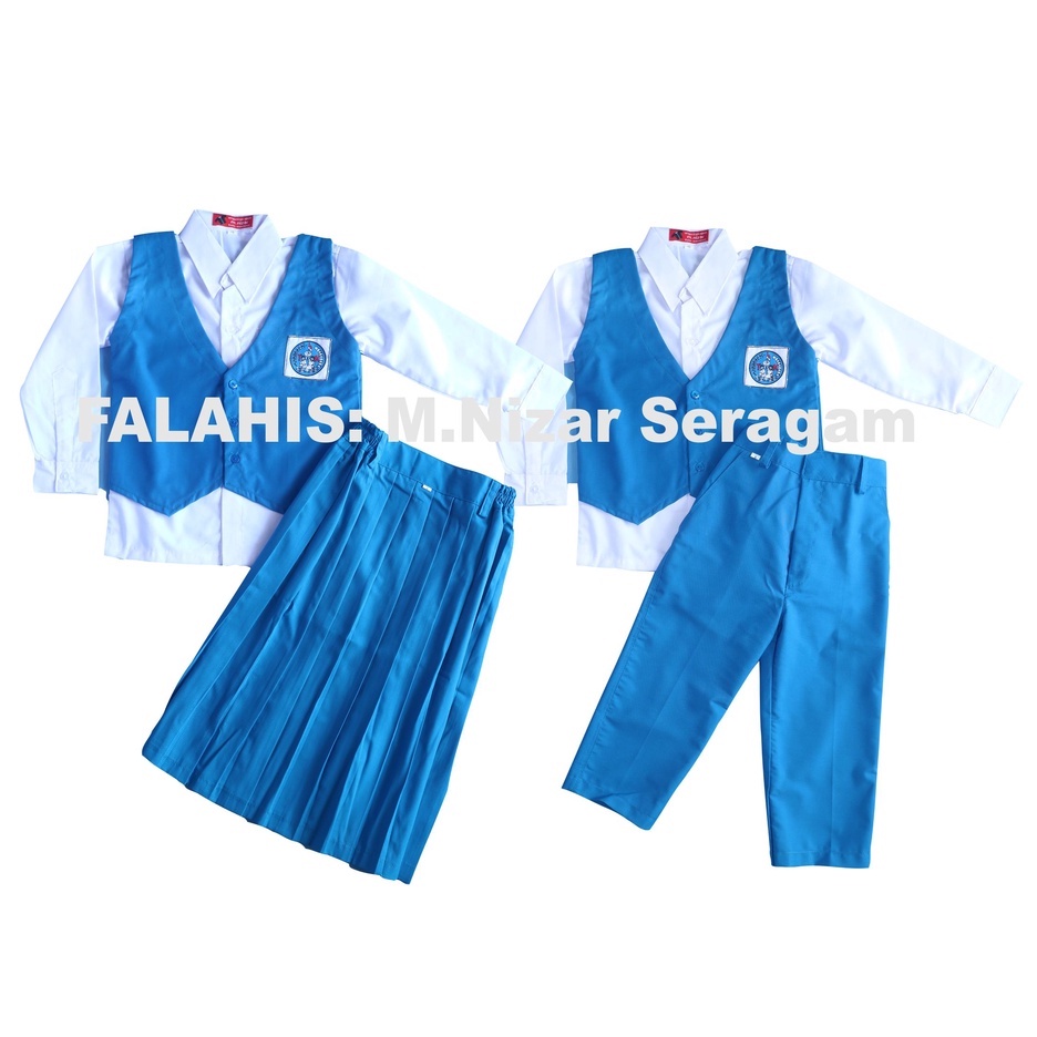 Seragam TK Nasional Biru Panjang Muslim Katun S-XXL