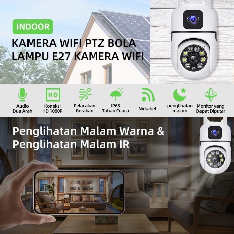 CCTV WiFi Dual Lensa Outdoor 1080P Full HD 1 Kamera Ganti 2 Pantau Lewat HP Night Vision Tahan Hujan