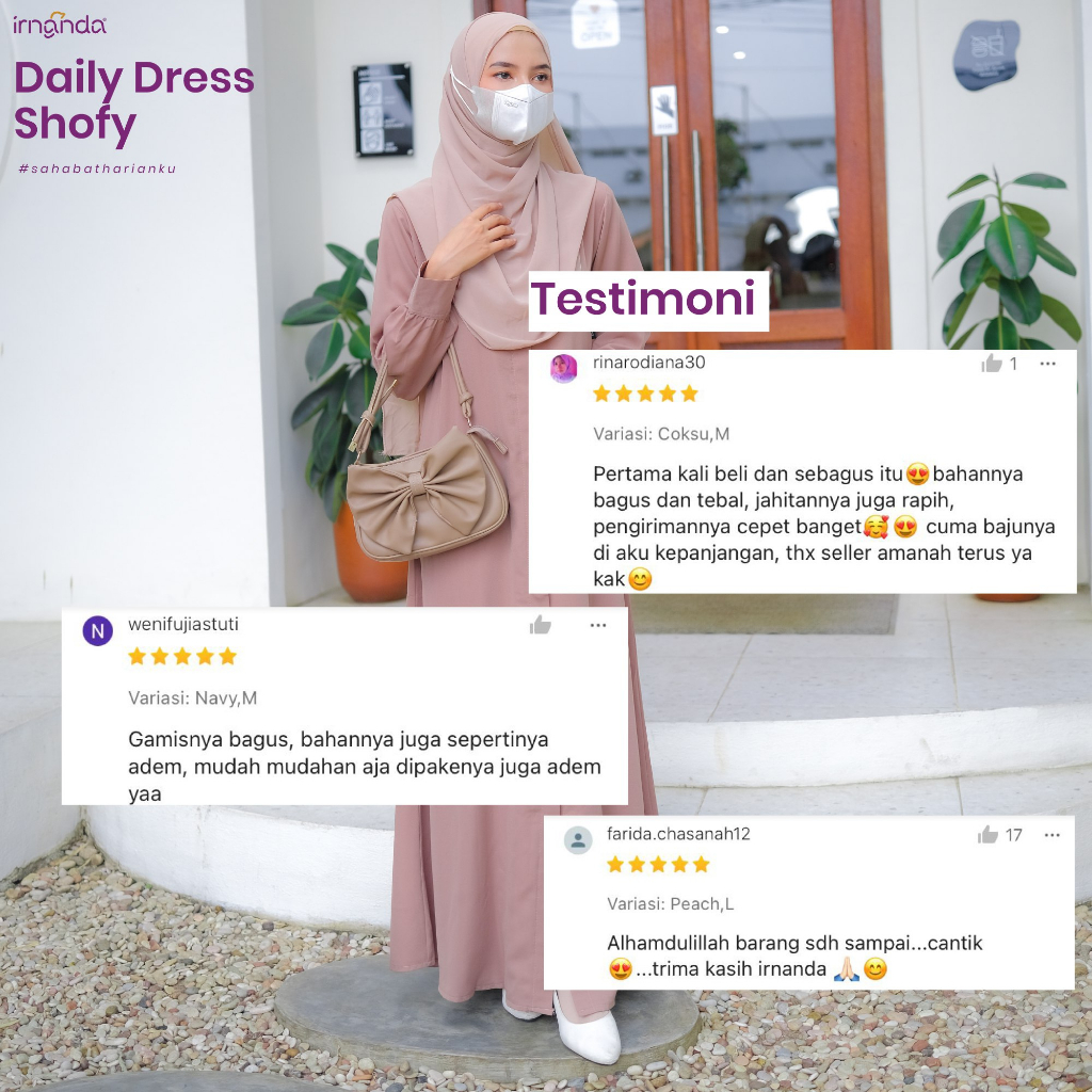Irnanda Gamis Shofy Dress Outer Polos Wanita Dewasa Remaja Premium Simple Full Kancing Depan Busui Friendly Adem Lembut Bahan Madeline Size M L XL Dailydress Homedress