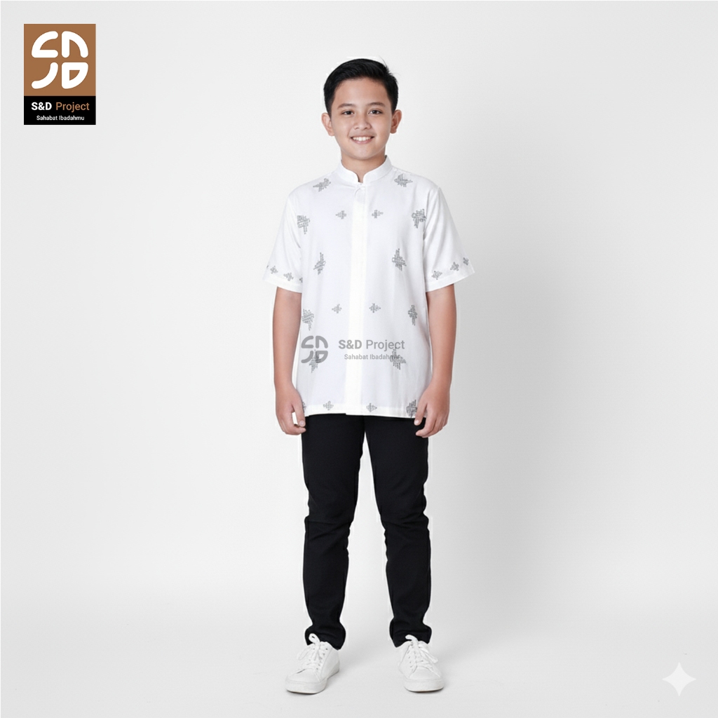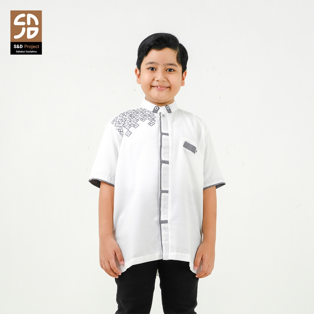 Koko Muslim Seri 20 Bordir Polikatun Putih Tulang 2-10 Tahun Anak Lengan Pendek