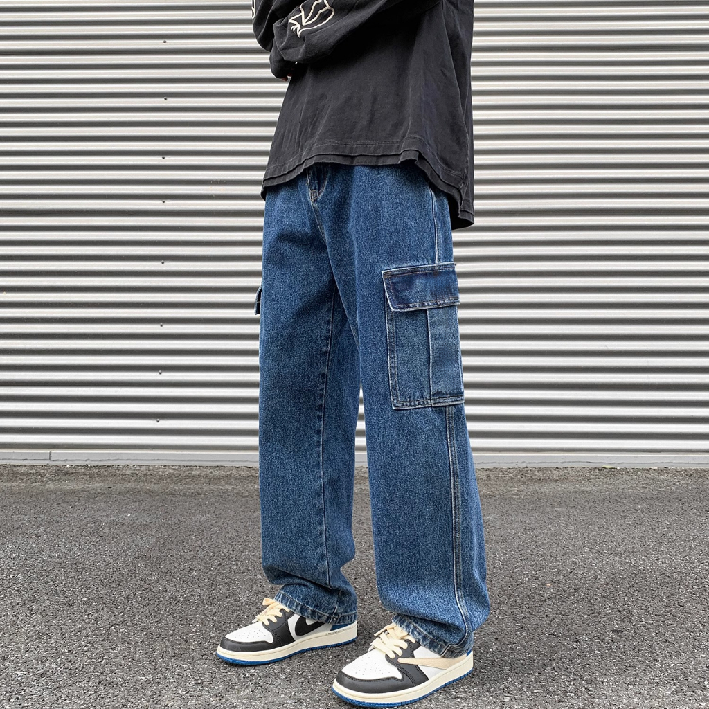 Tamp-X Oversize Baggy Celana Cargo Panjang Pria Jeans Cargo Jumbo Santai Korean Style Biru muda Hitam Biru Abu Straight