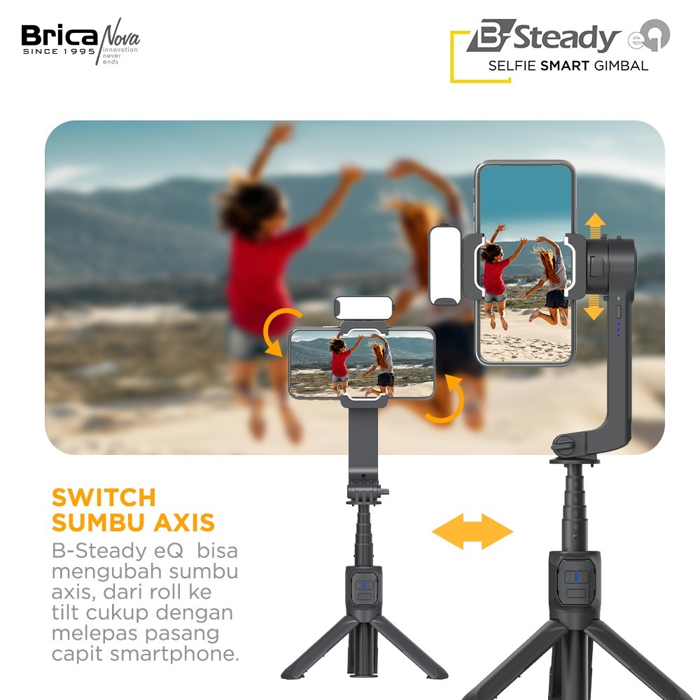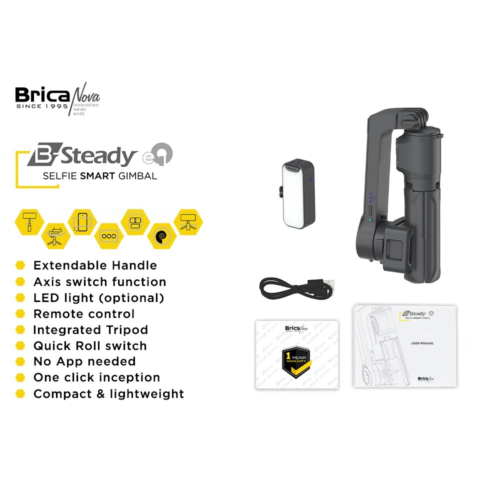 Brica B-Steady eQ - Selfie Smart Gimbal Stabilizer - Black - BSteady eQ - Bonus T-Shirt