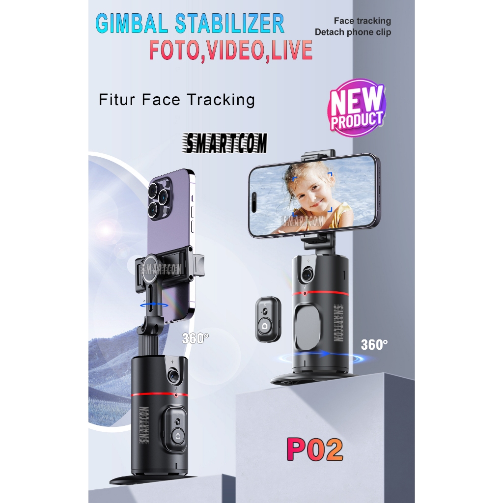 SMARTCOM P02 Gimbal Stabilizer HP Auto Face Tracking 360° with Bluetooth Anti Shake Anti Goyang