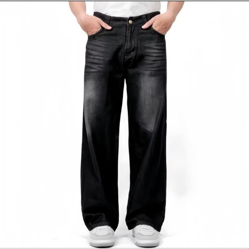 Celana Jeans Panjang Pria Loose Wisker Skena Baggy Hitam Retro Jeans Size 27 - 36 Reguler