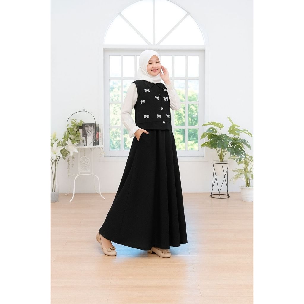 Pakaian Muslim Anak Remaja Perempuan Sakhira Set 3 in 1 Gamis Anak Tanggung Untuk Usia 9-15 Tahun Bahan Knit Mix Polo Linen Baju Kondangan Anak Terbaru Gamis 3 IN 1 Anak Perempuan Kekinian