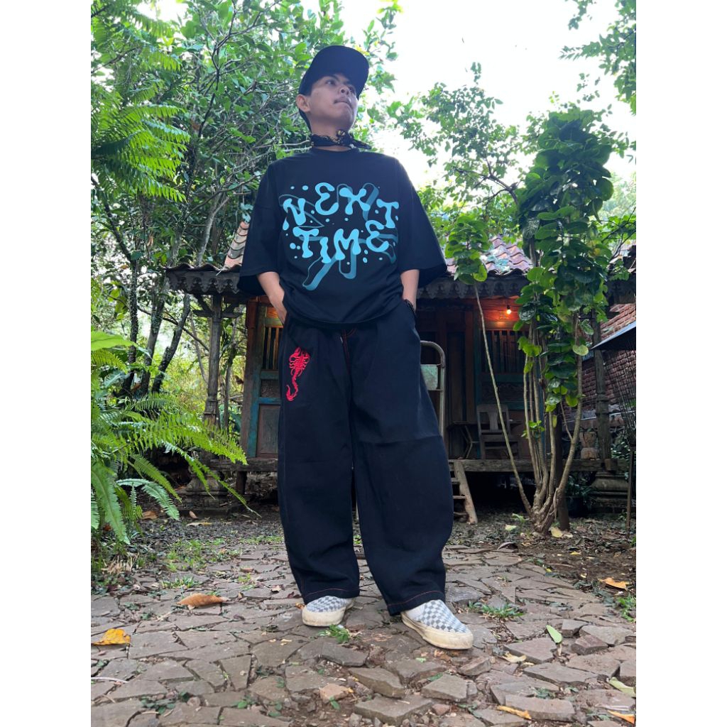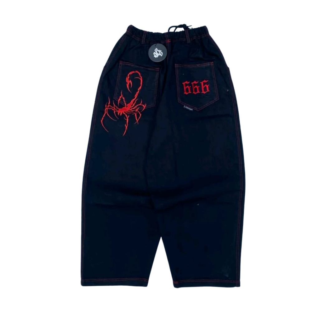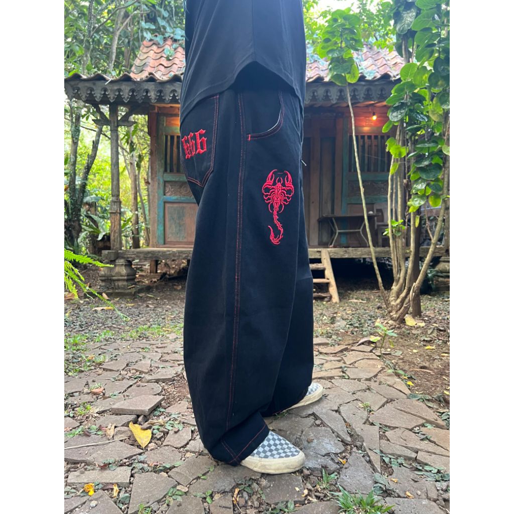 NOTBADCLUB || CELANA JEANS BAGGY BALLON HITAM BORDIR SCORPION || SC666