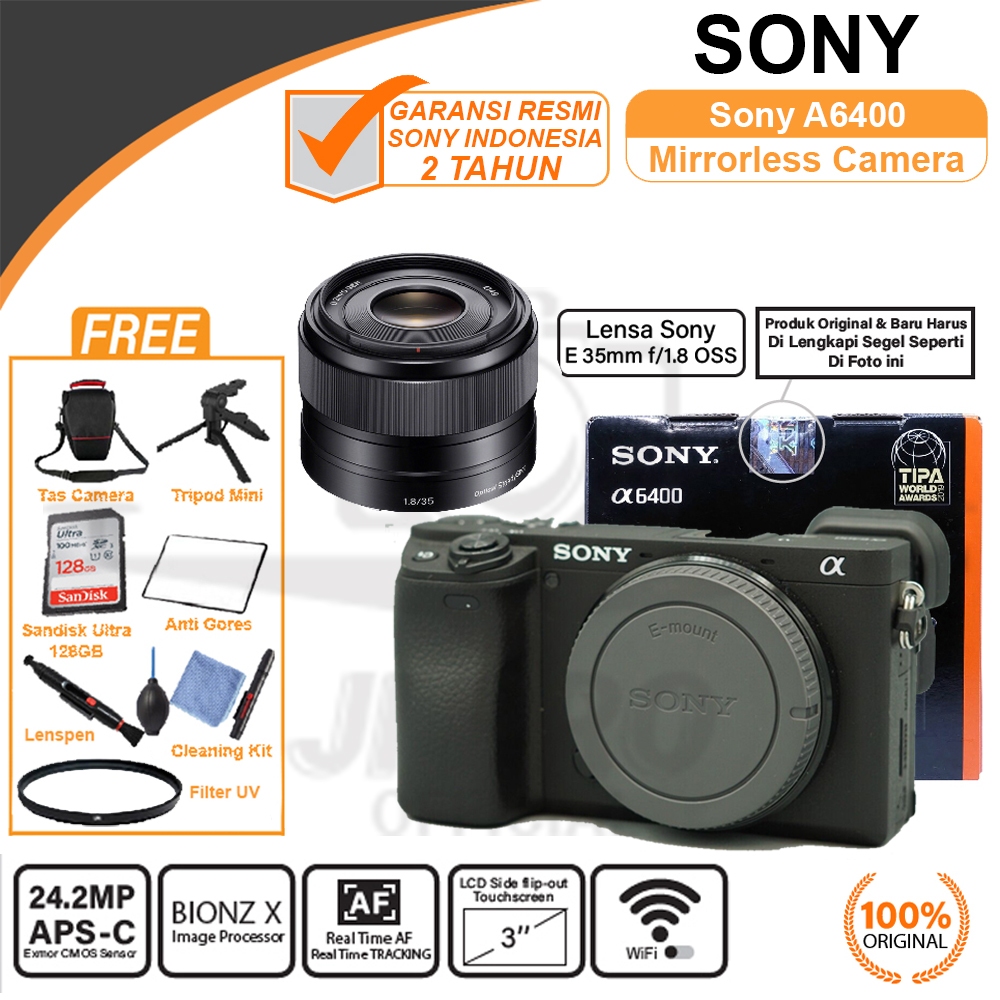 Sony Alpha A6400 Body Only / Sony A 6400 Kit 16-50mm f3.5-5.6 OSS II Mirrorless Camera Garansi Resmi