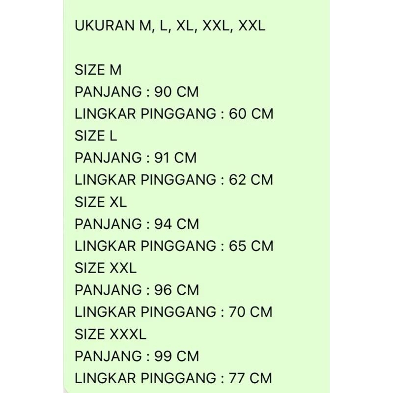 M ( P: 90/ LP: 60 ), L ( P:91/ LP: 61 ), XL ( P:94/ LP:65 ), XXL ( P:96/LP:70 ), 3XL ( P :97/LP: 77 )