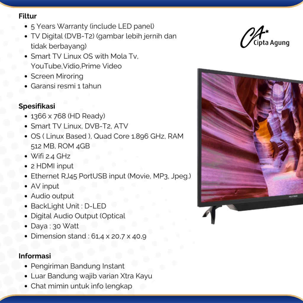 POLYTRON LED 24 INCH SMART DIGITAL TV - PLD 24CV1869 YOUTUBE 24CV 1869 SMART TV LED POLYTRON PLD24CV1869 / 24CV1869 / 24CV-1869 (24 INCH / DIGITAL) GARANSI RESMI [BDG]