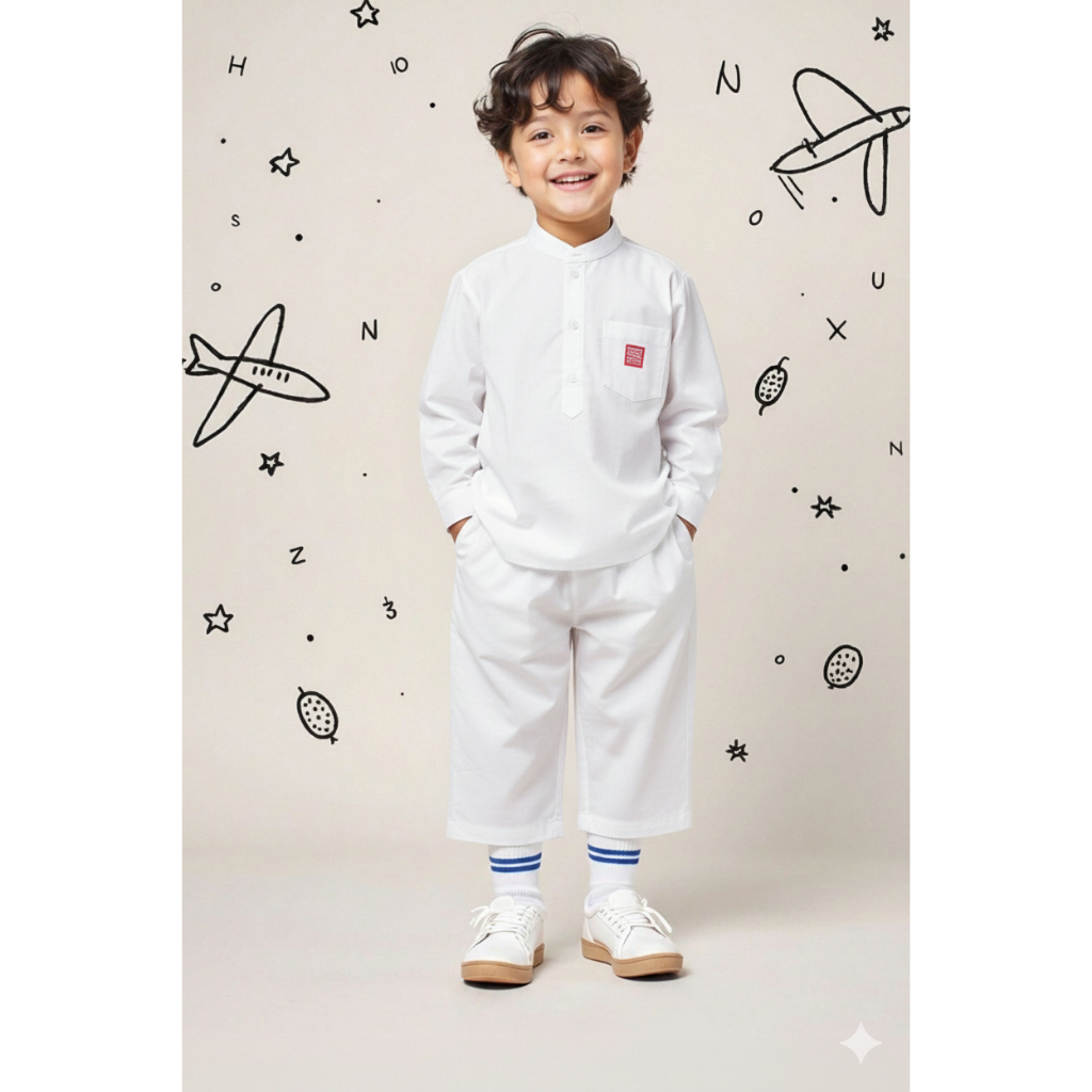 Setelan Baju Koko Anak Laki laki lengan panjang 1-12 Tahun Pakaian set muslim anak polos