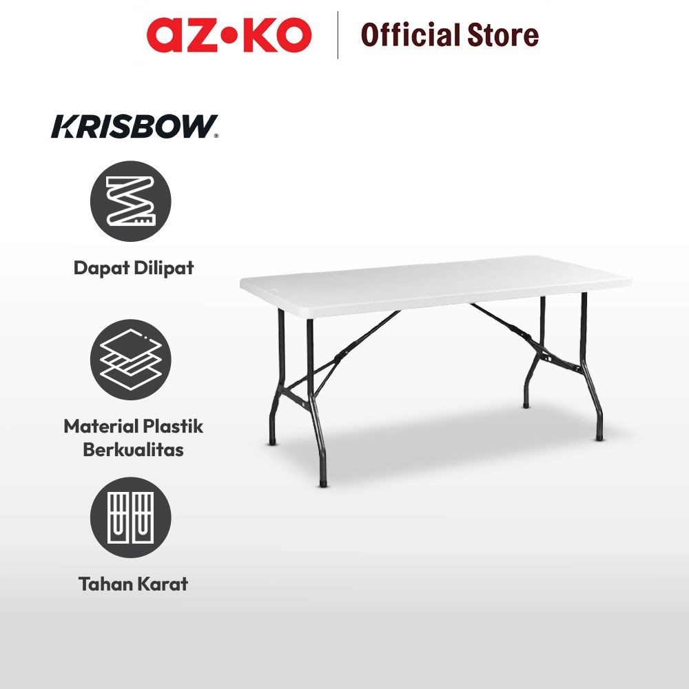 AZKO Krisbow Meja Lipat 152 cm - Putih Meja Serbaguna Folding Table Multifunctional Foldable Desk Picnic Table Furniture House