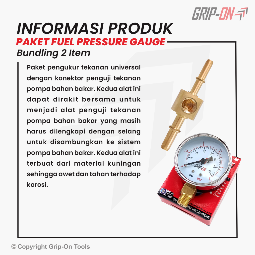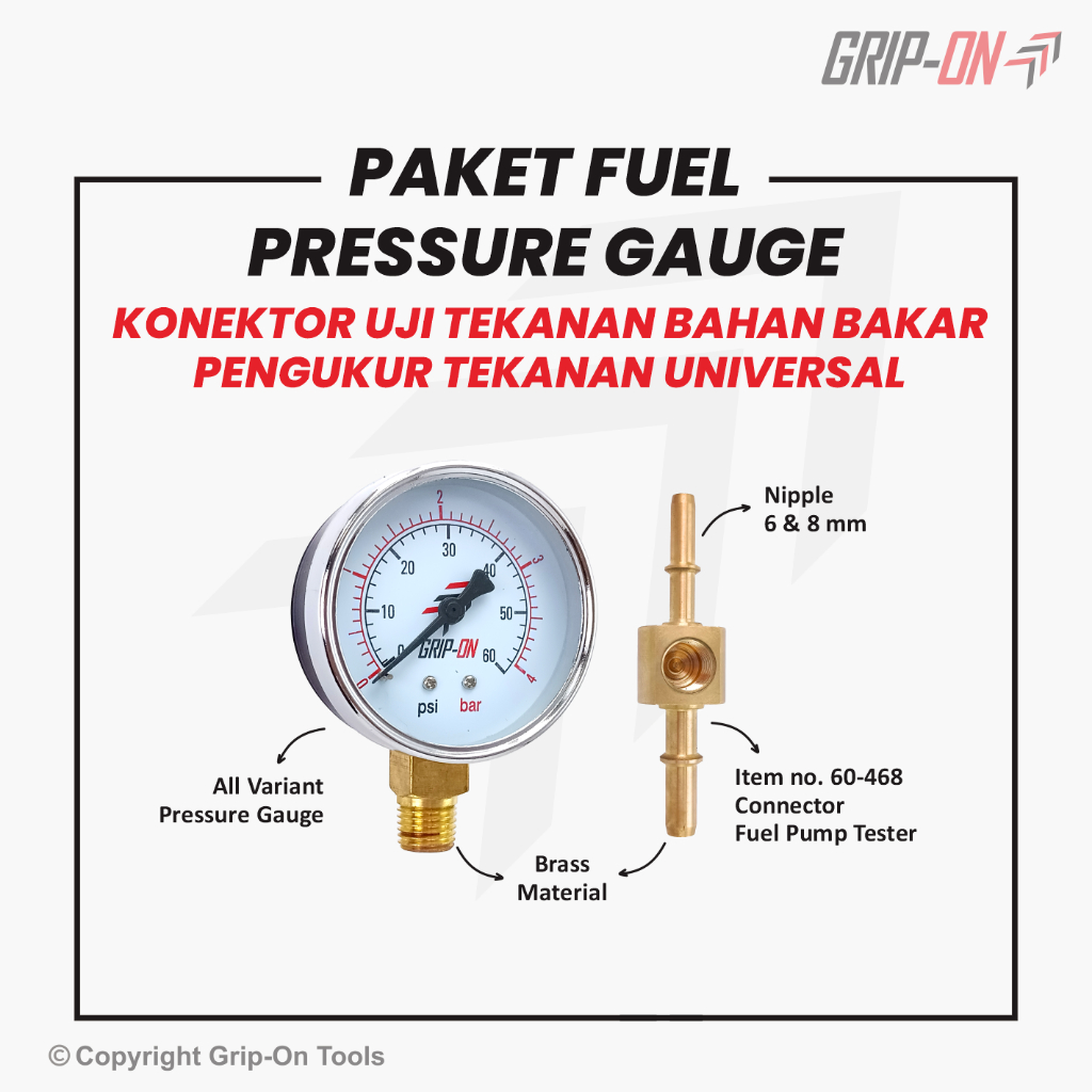 Grip-On Paket Bundling Fuel Connector Pressure Gauge - Grip-On Paket Konektor Uji Tekanan Bahan Bakar dan Pengukur Tekan