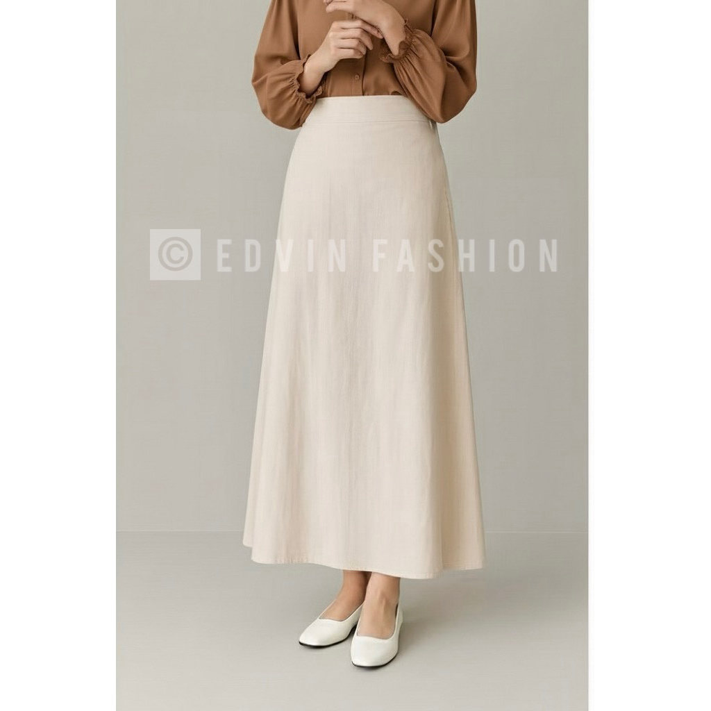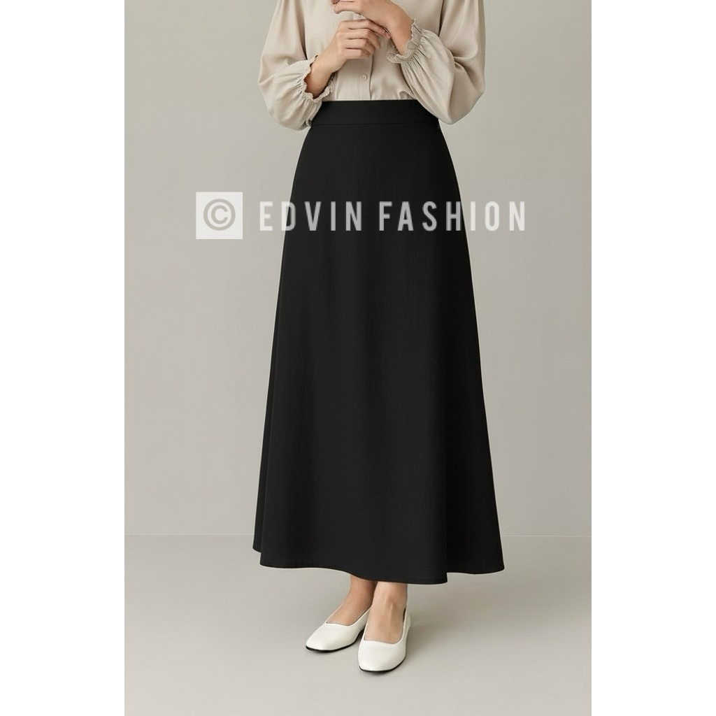 ROK KERJA/KULIAH Wanita A Line Panjang Model High Waist Simpel Kekinian