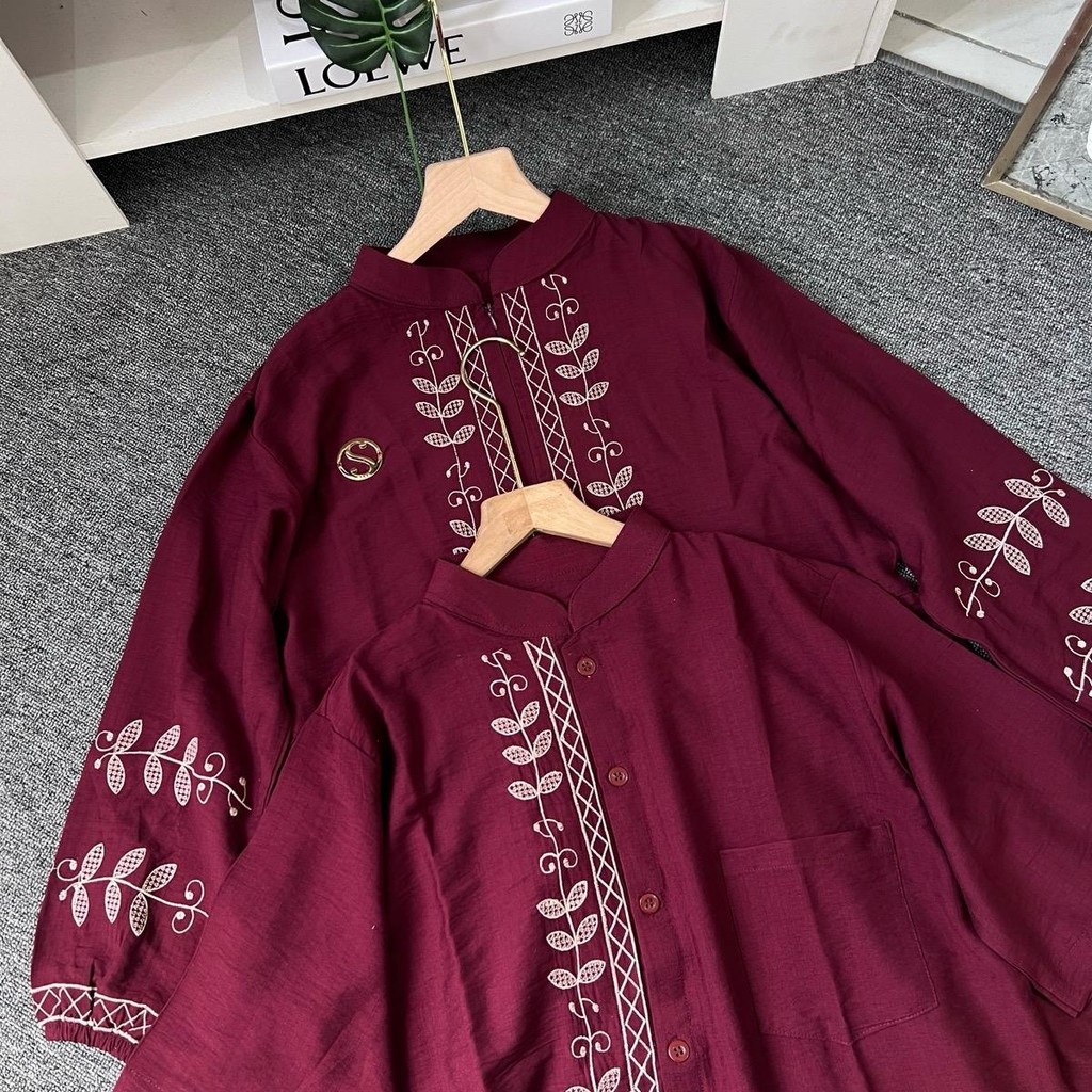 Sari Fashion - Habibah Couple Set Koko dan Gamis Bahan Linen Bordir Simple Elegan Sweet Couple