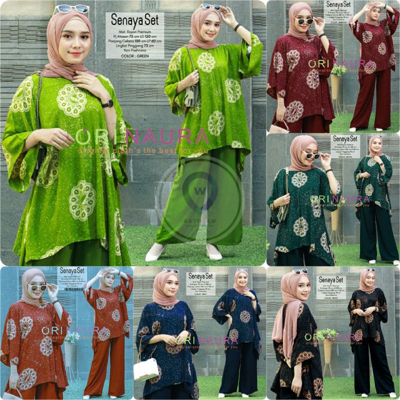 Setelan Jumbo Senaya Set Waka Waka Motif Bunga Ori Naura Size Jumbo Busui Resleting Rayon Tebal Lengan 3/4 / Set Wanita