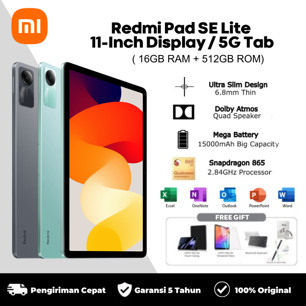 Redmi Pad SE Lite 16GB+512GB Snapdragon 680 Layar 11 inci Tablet FHD+ 8000mAh [Official Store]