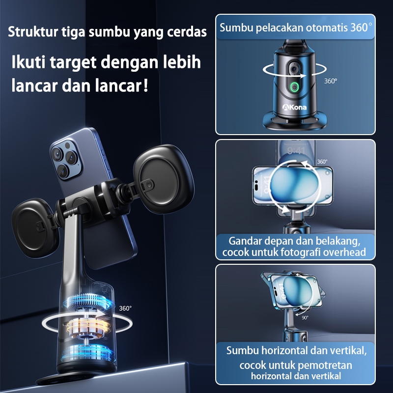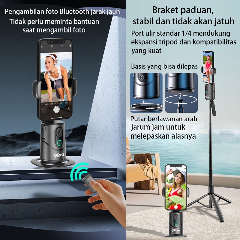 Akona Gimbal Stabilizer Hp 360° Auto Face Tracking For Tripod Handphone Bluetooth Remote Kontrol Isyarat With Lampu Led Konten Kreator Anti Goyang
