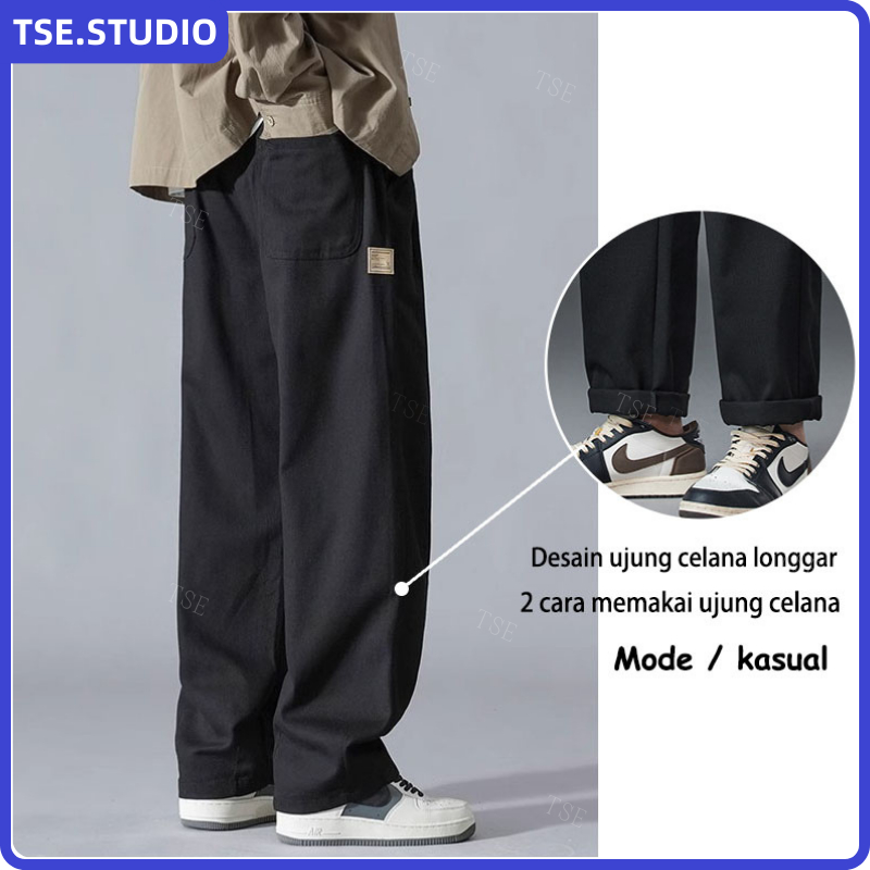 Celana Cargo Panjang Pria Oversize Casual Baggy Straights Korean Style Fashion Wide Leg Cargo Pants