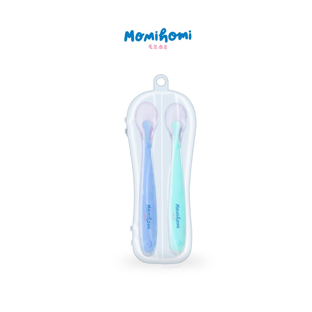 MOMI HOMI Sendok Makan Bayi Silikon Plus Box 3068 & 3069 Baby Safety Son Lentur Sendok Makan Silicone Mpasi Baby Food Son Food Grade BPA Free