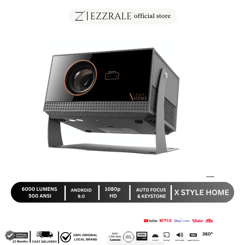 EZZRALE X STYLE HOME 6000 Lumens ( 500 ANSI ) Smart Android Projector 9.0