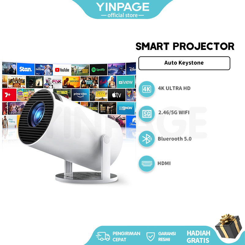 Proyektor 4K Android 11.0 Wifi 6 Bluetooth 5.0 1GB+8GB Smart Projector 1080P HD Portable Home Theater TV