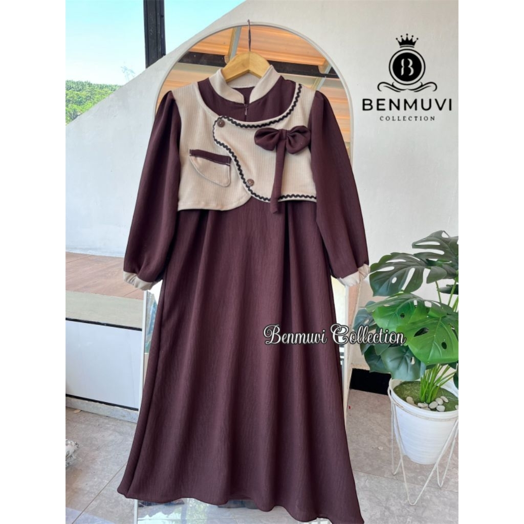 Gamis Laura Anak Terbaru Gamis Couple Mom & Kids Dress Rompi Knit Pita Baju Perempuan Trendy