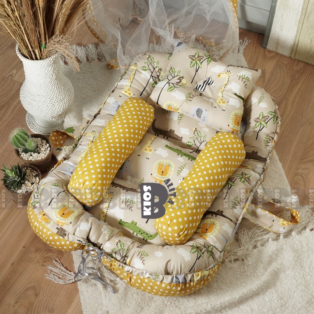 KASUR BAYI BABY NEST PREMIUM DENGAN KELAMBU + FREE BANTAL DAN GULING 2 SISI MOTIF BOLAK BALIK