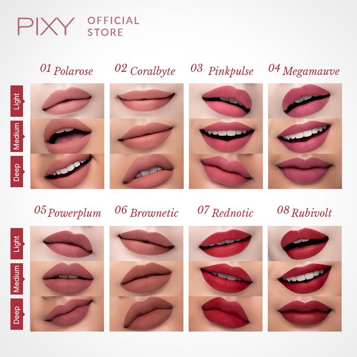 01 Polarose , 02 Coralbyte , 03 Pinkpulse , 04 Megamauve, 05 Powerplum , 06 Brownetic , 07 Rednotic , 08 Rubivolt