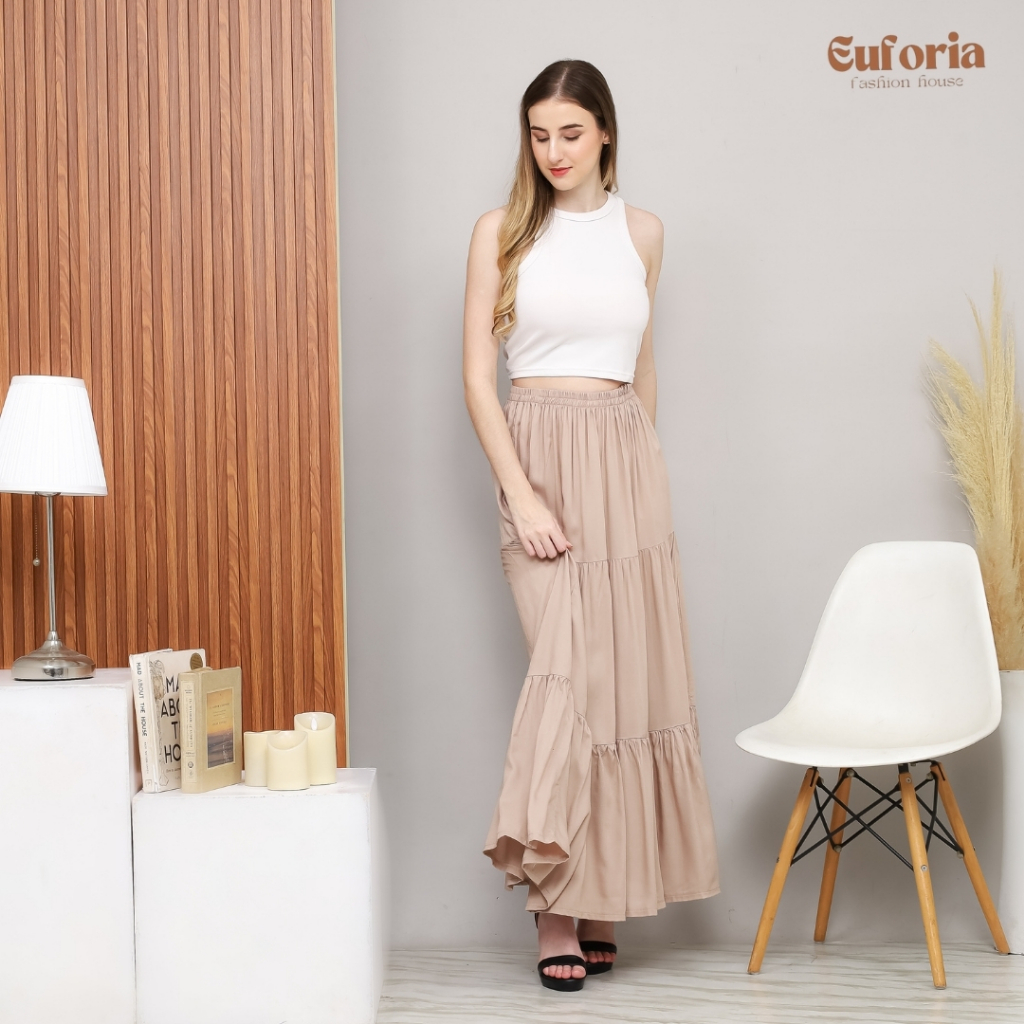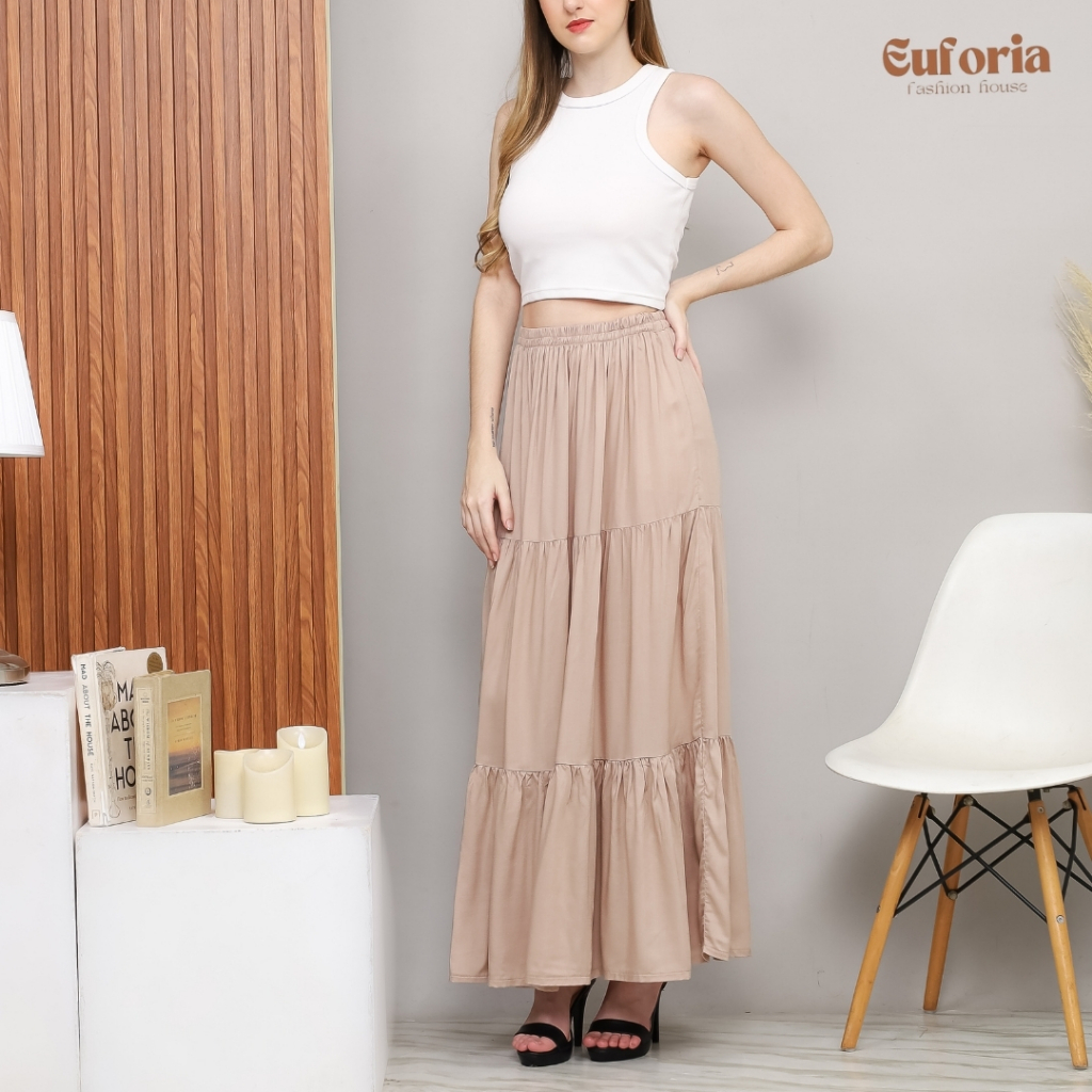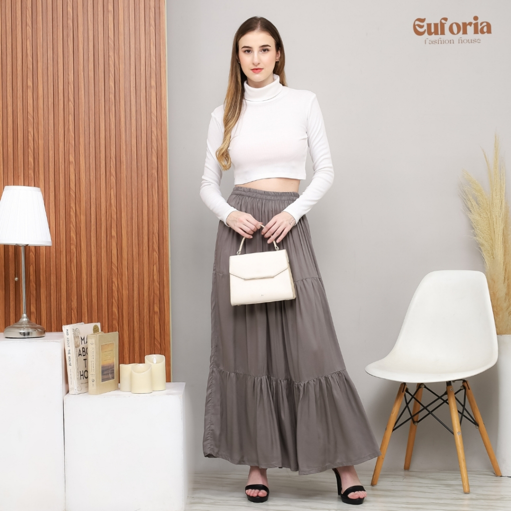 Ima Skirt Rok Wanita Korean Style | Rok Flowy Casual Wanita | Bawahan Wanita Panjang | Rok Remaja Kekinian | Rok Wanita Katun Rayon