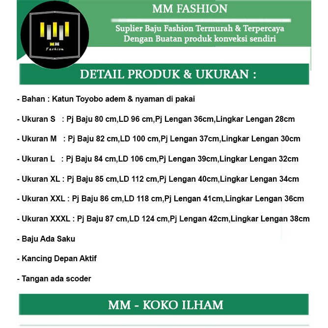 Koko Ilham - MM Fashion (MM) - Ukuran S-3XL - Matt Katun Toyobo - Baju Koko atasan Pria