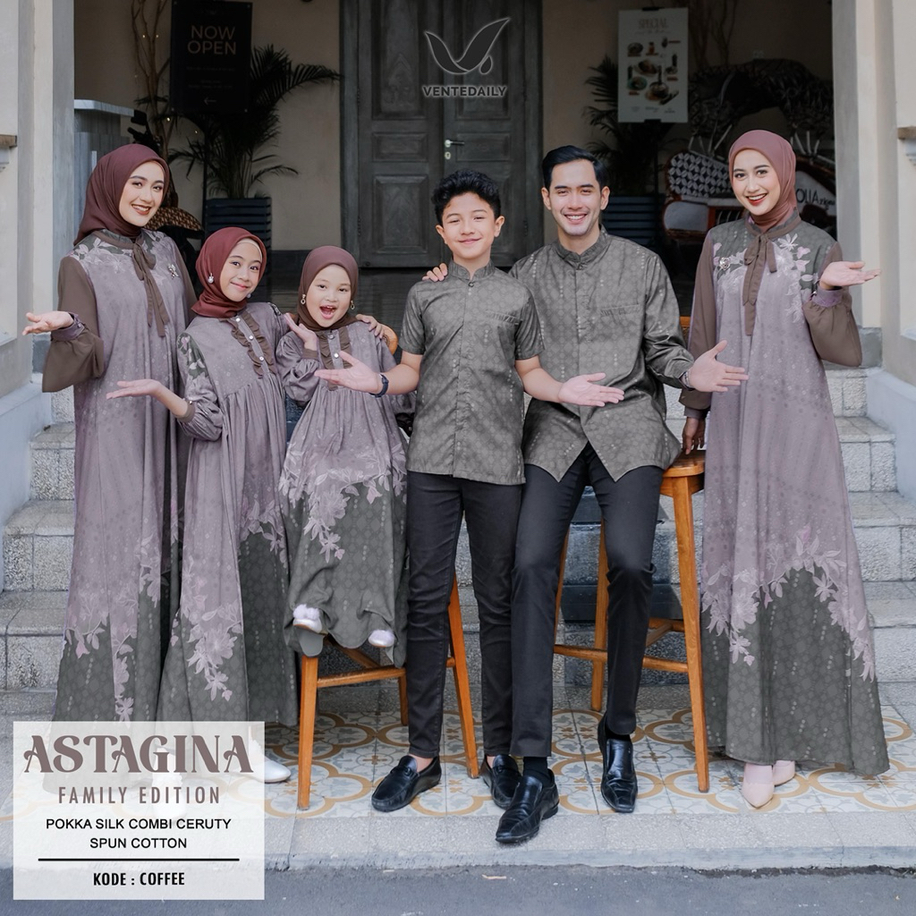 Riva Fashion Astagina Baju Sarimbit Keluarga Bahan Katun Sutra Silk Premium Motif Viral Koko Panjang